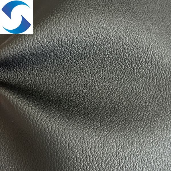 Anti-Mildew PVC Leather Fabric with 100% Polyester Knitted Backing Synthetic Embossed Synthetic black Leather fabric Images |